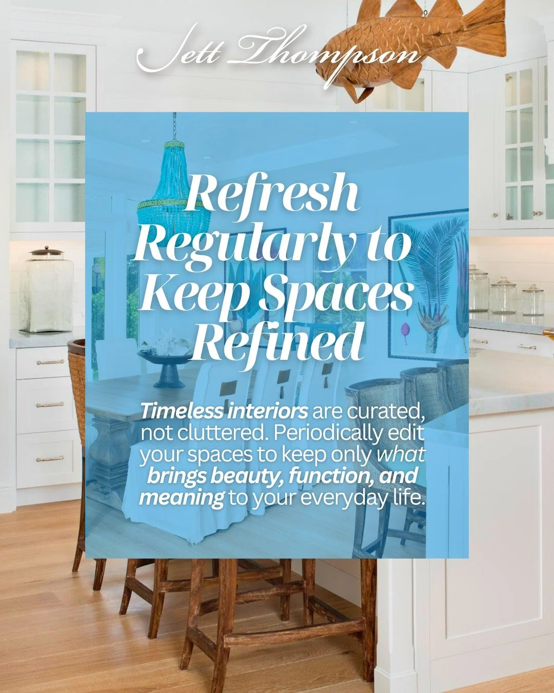 "When it comes to design styles, at Jett Thompson Interiors, we don't have a particular style. Our job is to design a home in an environment that's perfectly suited for our clients." - Jett