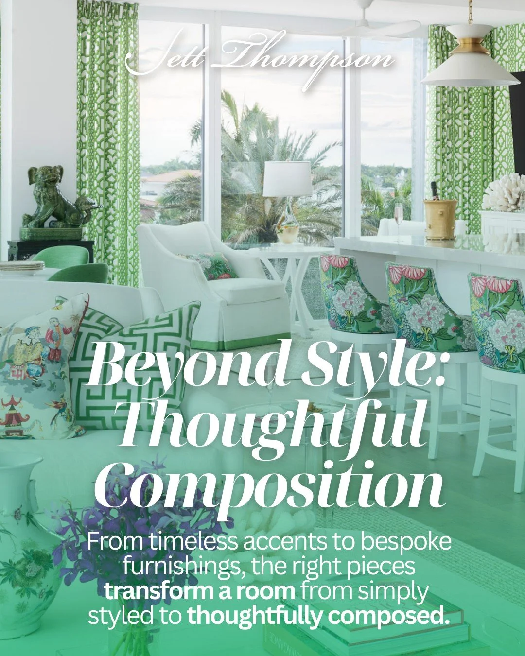 Welcome to Jett Thompson's world of interior design in Naples, Florida, where modern style meets timeless charm. Your home’s transformation begins here. Browse Jett’s portfolio, get to know our home store, and envision the story your living space can tell. From coastal estates to trendy lofts, discover the art of curated living in Naples, Florida.